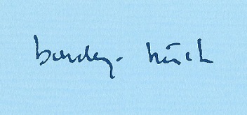 Deze catalogus bevatte een nogal verrassende bijdrage: een fraai gedicht getiteld MODERNE BIBLIOFILIE, speciaal voor de gelegenheid geschreven door (jawel!) Boudewijn Büch. De reden waarom hij zijn bezwaren opzij schoof en op mijn verzoek inging is mij niet bekend, maar goed, een zekere mate van paradoxaal gedrag was Büch niet vreemd. Hoort u mij klagen? De reacties uit het vak liepen uiteen van "Een fris geluid" (Boekblad) tot "Deze unieke en schitterende collectie had iets beters verdiend" (De Boekenwereld), ik vermoed dat ze allebei wel ergens gelijk hadden. Door Boudewijn gesigneerde exemplaren van de catalogus waren extra in trek en intussen had ik ook Gerard Reve gevraagd voor mij persoonlijk een exemplaar te signeren. Dat deed hij, en wel op de volgende curieuze manier: | ||