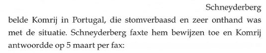 Het referentiepunt van dat "niets meer” zou het moment moeten zijn geweest van de kort hiervoor door de biograaf beschreven “afscheidsreceptie”, mede georganiseerd ter gelegenheid van Komrijs aanstaande vertrek naar Portugal, december 1982. We bladeren daarom eerst nog even terug: | ||